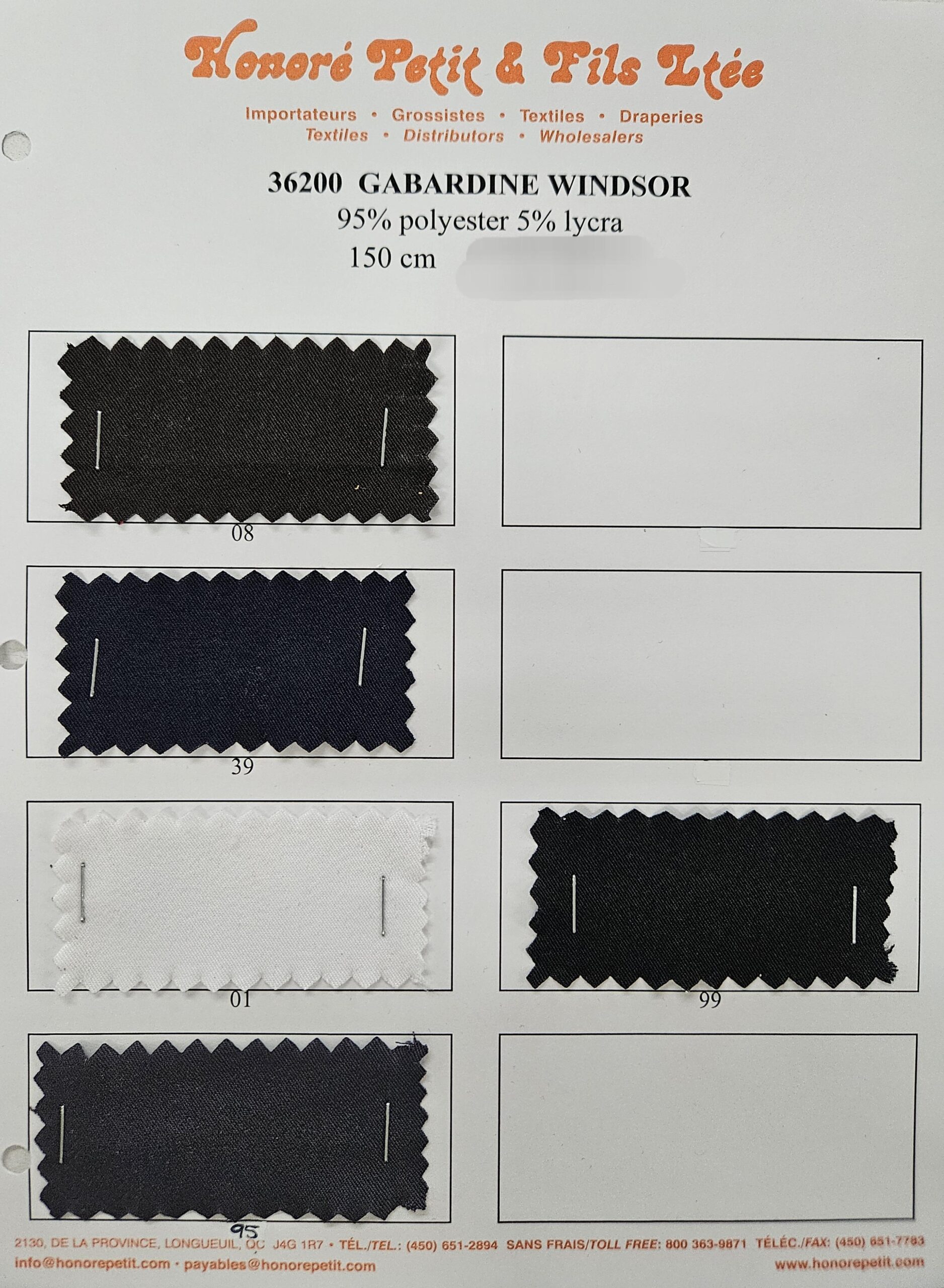 Gabardine Windsor - 95% polyester / 5% lycra